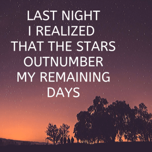 Let that sit for a moment. Feel the liberating sense of joy bubbling deep inside your chest. Knowing that you can smile, tell someone to have a good day. You can dance to your favorite song. Hug your kids. Hug your parents. Write a poem (or a blog post). Walk under the stars and let the knowledge that you are standing under a million stars. That you were given this moment to love… to love life, to love others, to love yourself.