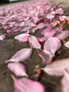 I was struck by the beauty and sadness of the scene. The trees in the area were still mostly filled with the blossoms. And the blossoms would be replaced with leaves and the trees would have a different look, a different beauty. But the situation reminded me that everything changes. Endings happen. There are new beginnings. And pain is part of that process. Whether it is regret or the feeling of loss, our heart goes through that pain. If we truly live our lives with an open heart, we will feel both sides of the spectrum. Joy and sorrow. That’s good. Those emotions give us a defining edge too.